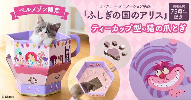 株式会社千趣会(本社:大阪市 代表取締役社長:鈴木聡 以下千趣会)の通販事業ベルメゾンで展開するDisney Fantasy Shop(ディズニー ファンタジー ショップ)」(以下DFS)では、ディズニー・アニメーション映画『ふしぎの国のアリス』劇場公開75周年を記念して、「ティーカップ型の猫の爪とぎ」(税込:5,990円)を2026年1月26日(月)よりベルメゾンネットにて販売開始します。(https://www.bellemaison.jp/)