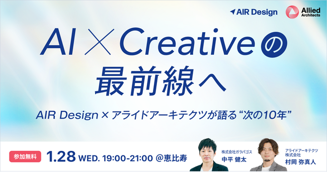「AI × Creative の最前線へ - AIR Design × アライドアーキテクツが語る“次の10年”」は、AI活用の最前線を知りたいマーケター、事業推進に携わる方、組織変革に関心のある方に向けた、学びと気づきを提供する特別イベントです。