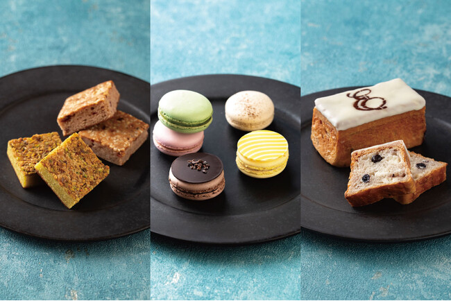 味わい豊かな2種の「ブラウニー」、見た目も華やかな5種の「マカロン」、そしてホワイトチョコレートのやさしい甘さとクリームチーズのコクがブルーベリーの酸味を調和したパン「White Box」。いずれも、贈る相手に笑顔を届けることを想い、一つひとつ丁寧に仕上げました。