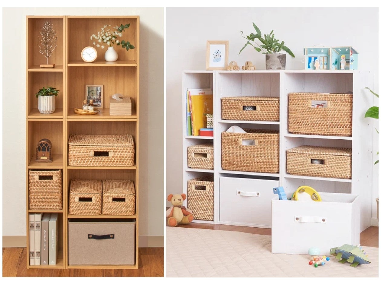 別売り専用パーツを使用することで同じ幅、高さの棚を上下左右に連結できるカラーボックスです。レギュラー・スリムタイプそれぞれ2段・3段サイズのバリエーションで、お部屋のスペースに合わせてアレンジできます。