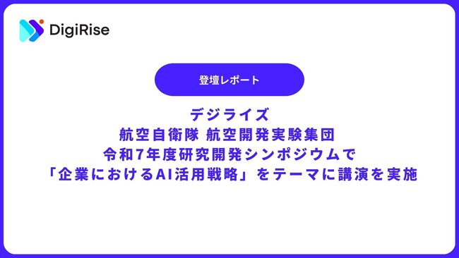 株式会社デジライズ(本社:東京都港区、代表取締役:茶園 将裕、以下「デジライズ」)は、生成AI活用推進企業の代表として、2026年1月21日(水)に開催された航空自衛隊開発実験集団研究開発シンポジウムにて「企業におけるAI活用戦略」をテーマに講演をいたしました。