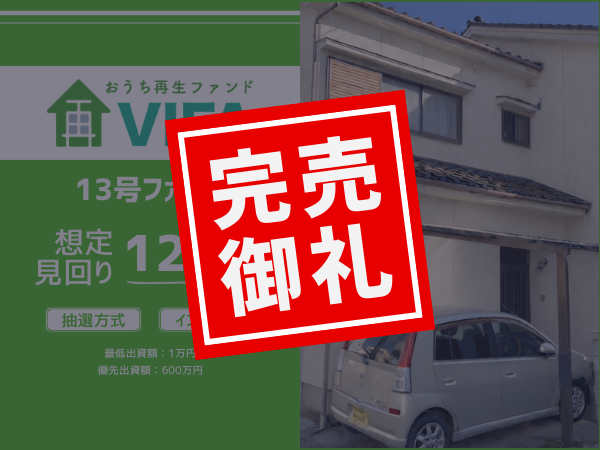【完売御礼!&新規募集開始】「おうちの再生ファンドVIFA」13号ファンド完売!1月29日に14号ファンドを募集開始します!