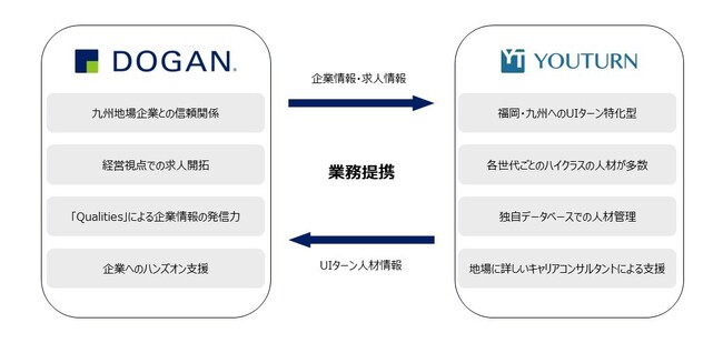 株式会社ドーガン(本社:福岡市中央区、代表取締役社長:森大介、以下「当社」という。)は株式会社YOUTURN(本社:福岡市中央区、代表取締役:高尾大輔、津金大樹、以下「YOUTURN」という。)と、九州の企業が抱える「優秀なUIターン人材の採用」という経営課題の解決と、UIターン希望者の「キャリアアップと移住の成功」を最大化するため、人材紹介事業における業務提携を締結いたしましたので、お知らせいたします。