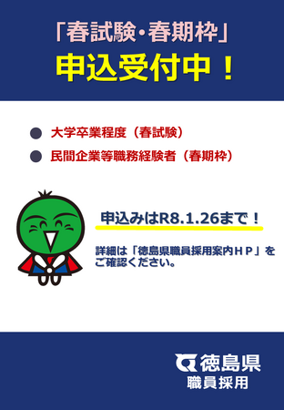 - 「『春試験』変わります! 徳島県職員お仕事説明会」申込締切迫る!01/09 14:20