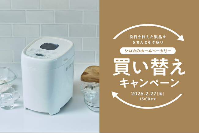 シロカ株式会社(東京都・千代田区)は、「おうちベーカリー ベーシック」「おうちベーカリー ベーシック プラス」のリニューアル発売を記念し、シロカオンラインストア 本店限定でお得な「買い替えキャンペーン」を実施します。