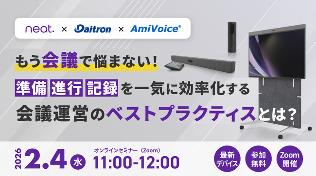 2026年2月4日(水)、株式会社アドバンスト・メディア(本社:東京都豊島区、代表取締役会長兼社長:鈴木清幸 以下、アドバンスト・メディア)は、「もう会議で悩まない!準備・進行・記録を一気に効率化する会議運営のベストプラクティスとは?」を共催いたします。