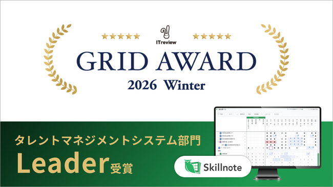 製造業の人材課題をスキルデータで解決する株式会社Skillnote(本社 東京都千代田区、代表取締役 山川隆史、以下 Skillnote)が提供する「Skillnote スキルマネジメントシステム」が、アイティクラウド株式会社が主催する「ITreview Grid Award 2026 Winter」タレントマネジメントシステム部門で「Leader」を受賞しました。