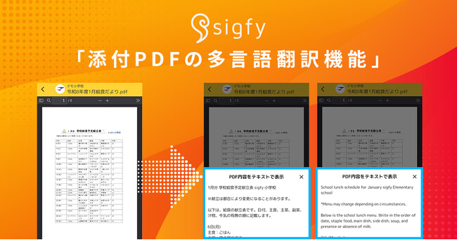 株式会社Fusic(本社:福岡県福岡市中央区、代表取締役社長:納富貞嘉)は、当社が提供する学校・保護者向け連絡サービス『sigfy(シグフィー)』において、新機能「添付PDFの多言語翻訳機能」の提供を開始しました。