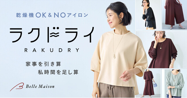 株式会社千趣会(本社:大阪市 代表取締役社長:鈴木聡 以下千趣会)の通販事業ベルメゾンは、働く女性に向けたレディースファッションの新ブランド「ラクドライ」を2026年1月26日(月)にベルメゾンネットにて発売します。(https://www.bellemaison.jp/) 全アイテムが乾燥機対応で洗濯物を干す手間を省けるだけでなく、アイロン掛けも不要というメリットがあり、職場でも着用可能なブラウスやスカーチョなど計3商品を展開します。また、2026年3月頃には新たに4アイテムを追加、その後も順次ラインアップの拡充を予定しています。