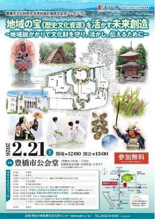 今回、 令和7年7月18 日に「豊橋市文化財保存活用地域計画」が文化庁の認定を受けたことを記念して、令和8年2月 21(土)に「文化財保存活用地域計画認定記念シンポジウム」を開催します。