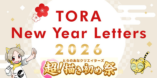 株式会社虎の穴(本社:東京都千代田区、以下とらのあな)は、2026年1月1日(木)よりとらのあな特設サイトにて、総勢180名以上のクリエイター様による2026年新春の記念メッセージ企画「TORA New Year Letters2026」を開催中です。さらに1月24日(土)0時より、同じくとらのあな特設サイトにて、総勢160名以上のクリエイター様の『書き下ろし直筆イラスト色紙』を販売する「とらのあなクリエイターズ 超!描き初め祭」を開始いたします。