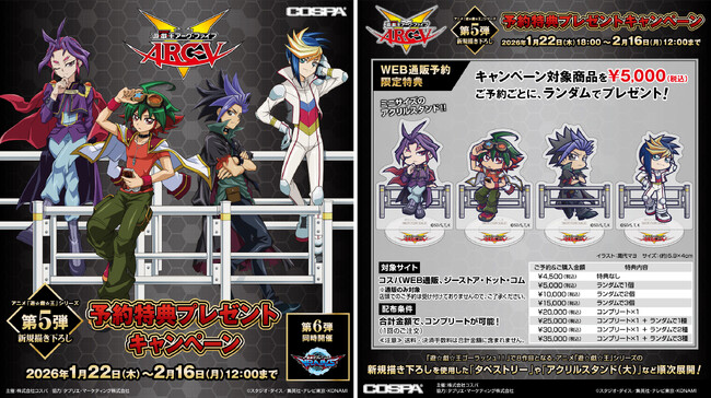 アニメ『遊☆戯☆王』シリーズ新規描き下ろしグッズ&予約特典キャンペーン【第5弾】遊☆戯☆王ARC-V/【第6弾】遊☆戯☆王VRAINSが登場!【株式会社コスパ】