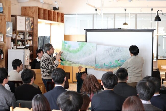 サンクゼールの森では、クマやイノシシといった野生動物が複数回観察されており、野生動物との適切な距離をどう確保するかが課題になっています。そこで今回の特別教室では、「森ラボチーム」と社員によるパネルディスカッションを企画。森の活動や自然への関心が高い社員6名が登壇し、野生動物との共生や森の未来をテーマに「森ラボチーム」と直接意見を交わします。