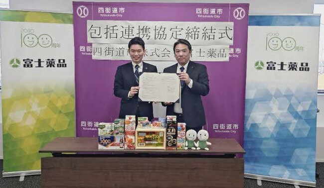 四街道市と株式会社富士薬品は、市民の健康づくり等を推進し、もって地域の一層の活性化及び市民サービスの向上に寄与することを目的として、包括連携協定を締結しました。
