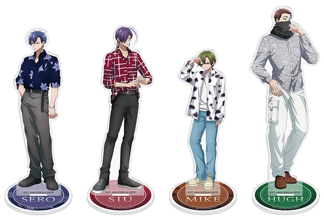 また、全国アニメイトにて、セロ(CV:土岐隼一)、シウ(CV:寺島拓篤)、ミケ(CV:永塚拓馬)、ヒュー(CV:阿座上洋平)による録り下ろしの店内ナレーション動画を放映! 期間によって聞けるコメントが異なるのでお楽しみに。さらに、同キャラクターのスタンディパネル展示などもございますのであわせてチェックしてみてください!