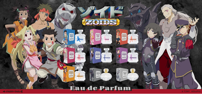 フェアリーテイル株式会社は、リアルムービングキット(組立式駆動玩具)「ゾイド(ZOIDS)」(発売元:株式会社タカラトミー)の初代アニメ『ゾイド -ZOIDS-』に登場するキャラクターをイメージした香水を発売します。