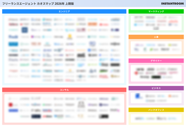 フリーランスエンジニア・ITフリーランスの案件・求人検索サイト『フリーランスボード』(https://freelance-board.com/)を運営するINSTANTROOM株式会社(本社:東京都渋谷区、代表取締役:曽根弘介)は「【2026年上期版】フリーランスエージェントカオスマップ」を公開しました。