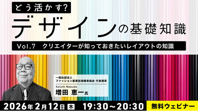 株式会社クリーク・アンド・リバー社(C&R社)は2026年2月12日(木)と26日(木)、Webや映像、ゲーム、広告・出版、ファッション、インテリアなどでデザイナーとして活躍されている方を対象に、無料のオンラインセミナー「どう活かす?デザインの基礎知識Vol.7・Vol.8」を開催します。
