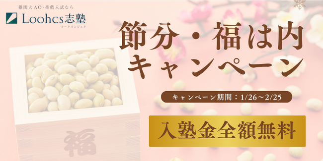 総合型選抜(旧AO入試)専門塾 Loohcs志塾(ルークス志塾) は、総合型選抜・推薦入試に向けた早期対策を後押しする取り組みとして、「節分・福は内キャンペーン」 を期間限定で実施いたします。
