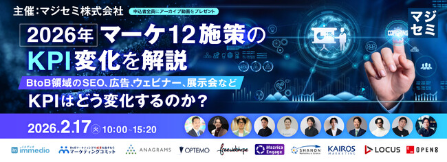 マジセミ株式会社は「2026年、マーケ12施策のKPI変化を解説」というテーマのウェビナーを開催します。
