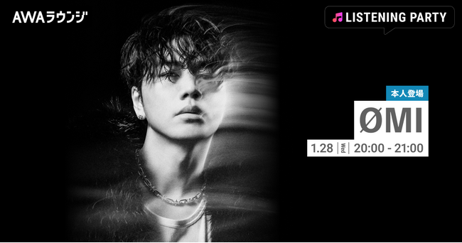 AWA株式会社(本社:東京都港区、代表取締役CEO:冨樫晃己)が運営する、サブスクリプション型(定額制)音楽ストリーミングサービス「AWA(アワ)」は、2026年1月28日(水) 20:00~21:00にて、無料で誰でも参加できるオンライン空間「ラウンジ」で、ØMIが音声で登場するリスニングパーティーを開催いたします。