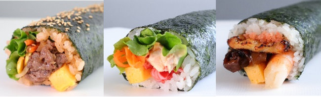 ローストビーフやサーモン、生ハムなどを巻いたワンハンド巻寿司