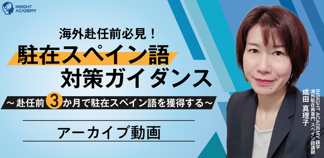 グローバル人材育成・研修業を手掛けるインサイトアカデミー株式会社(本社:東京都港区新橋、代表:金 珍燮)は、無料webセミナー「【海外赴任前必見!】”駐在スペイン語” 対策ガイダンス~ 赴任前3か月で駐在スペイン語を獲得する~」のアーカイブを無料公開します。