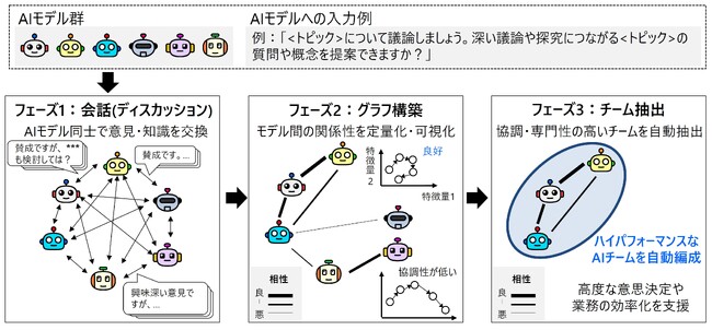 AIモデル同士の会話から相性を特定し、ハイパフォーマンスなAIチームを自動編成する技術を開発