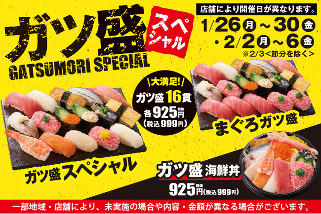 小僧寿しでは、ボリューム感と美味しさにこだわった『ガツ盛スペシャルフェア』を1月26日(月)~平日限定開催します!