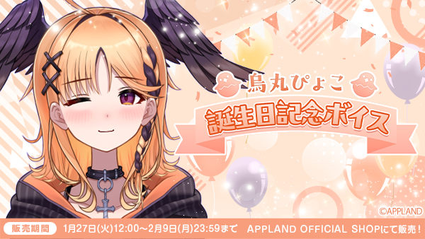 株式会社アップランド(本社:東京都世田谷区、以下「当社」)が運営するVTuberグループ「ぶいぱい」烏丸ぴょこの誕生日を記念して、限定ボイスをAPPLAND OFFICIAL SHOPにて販売することをお知らせします。