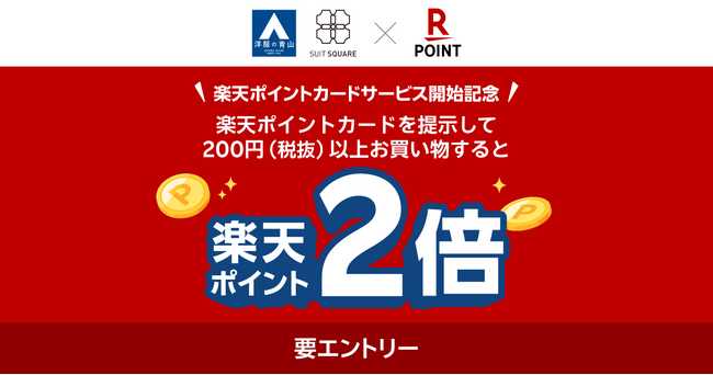 本導入を記念して、2026年1月29日(木)から3月31日(火)まで、「洋服の青山・SUIT SQUARE 楽天ポイントカード開始!ポイント2倍キャンペーン」を実施します。