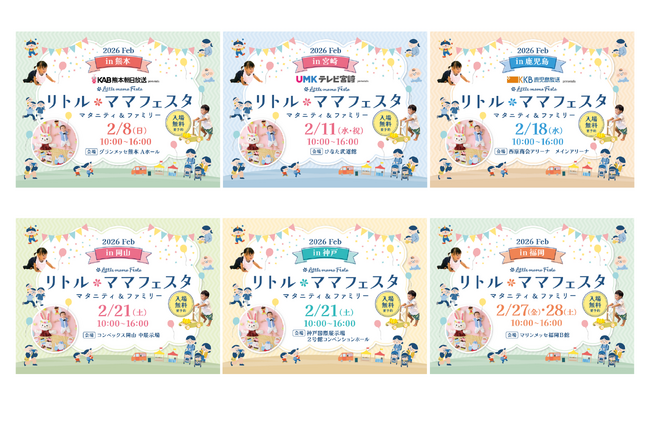 国内最大規模の親子フェスタを開催する株式会社エンファム.(東京本社:東京都港区、福岡本社:福岡県福岡市、代表取締役:森 光太郎)は、2月8日(日)熊本、2月11日(水・祝)宮崎、2月18日(水)鹿児島、2月21日(土)岡山・神戸、2月27日(金)・28日(土)福岡の6都市にて、親子向けイベント【リトル・ママフェスタ】を開催いたします。ママ・パパとお子さまとの『思い出づくりの場』として、ご家族皆様でお楽しみください。