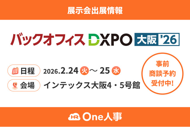 【2/24,25開催】One人事、展示会「第4回 バックオフィスDXPO 大阪’26」に出展