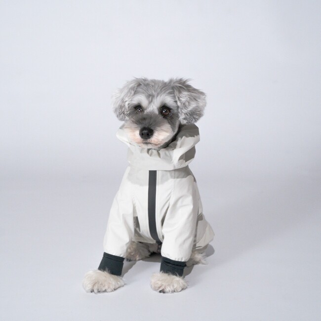 本商品は、シュナウザー・足長テリアに特化したアイテムを約30年にわたり展開してきたドッグブランド「デザインエフ」との共同開発により誕生した、シュナウザー・足長テリア専用仕様のレインスーツです。生地には、現行のUltra Rain Suitとは異なる素材を採用。自然に溶け込むSnowとSandの落ち着いたカラー展開で、さまざまなシーンになじむデザインに仕上げています。