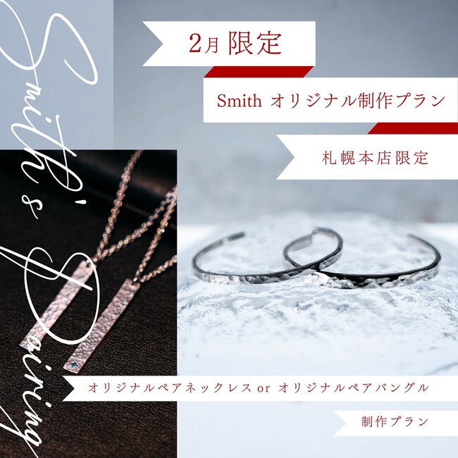 株式会社一宝(所在地:北海道札幌市)が運営する手作り結婚指輪・婚約指輪の「工房Smith札幌本店」は、2026年2月1日から2月28日までの期間限定で、「2月限定 Smithオリジナル制作プラン」を販売いたします。
