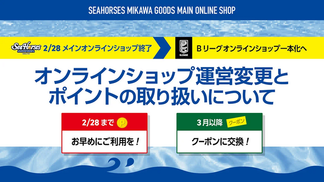 【2/28まで】シーホース三河メインオンラインショップ休止に伴う、ポイント利用・移行手続きについてのお知らせ