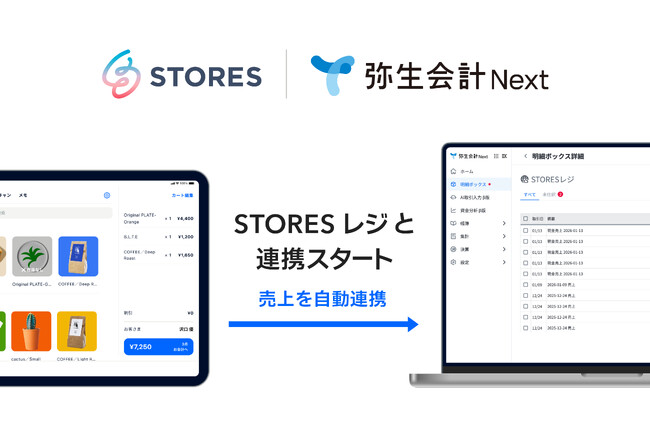 STORES 株式会社(以下、STORES)が提供するPOSレジサービス「STORES レジ」は、弥生株式会社(本社:東京都千代田区、代表取締役 社長執行役員 武藤健一郎)が提供する法人向けクラウド会計サービス「弥生会計 Next」との連携を開始したことをお知らせします。本連携により、STORES レジ の売上データが弥生会計 Nextへ自動で連携され、店舗運営における経理業務の負担を軽減します。