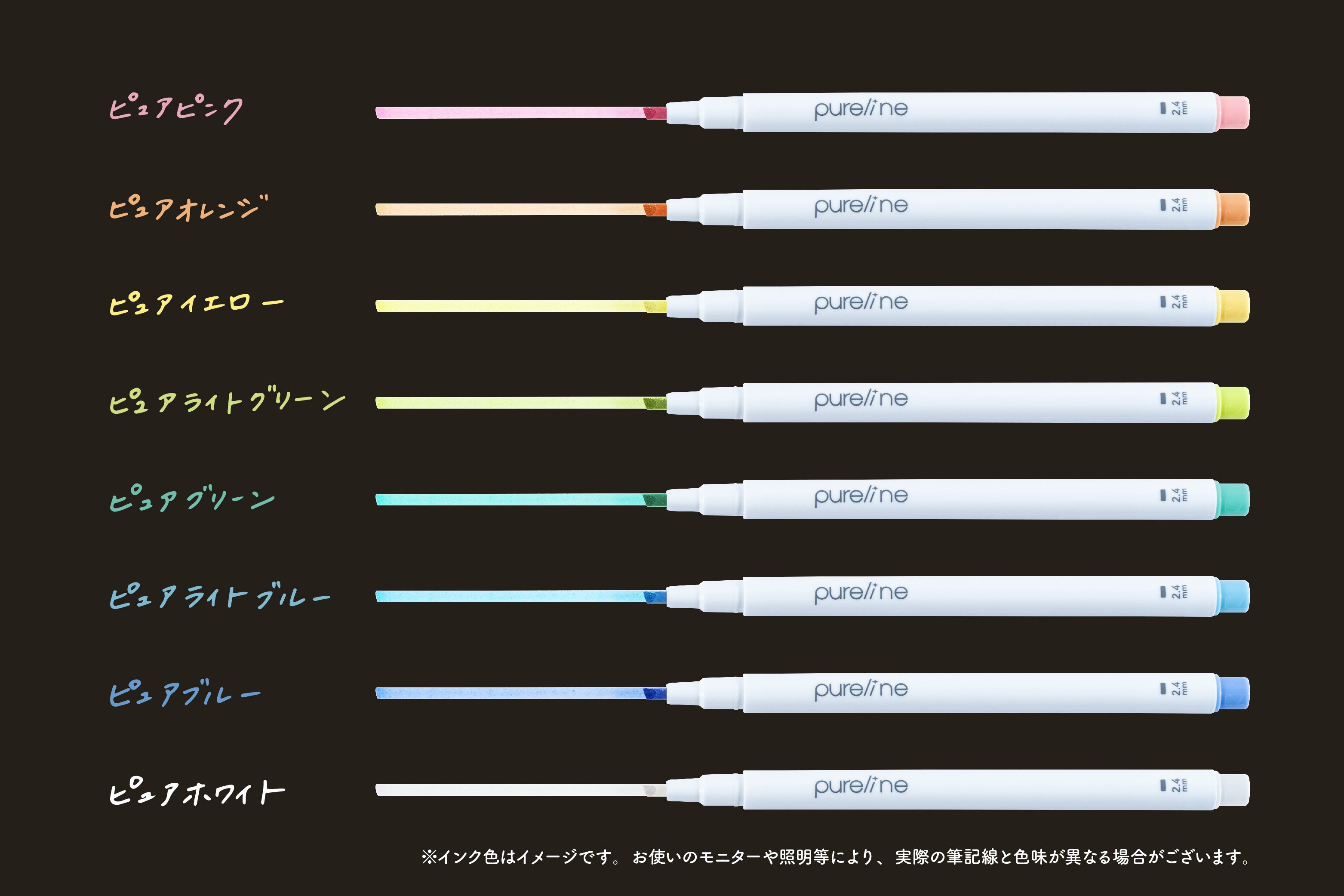 スリムなペン幅でロジカル罫にぴったりピュアラインはスリムな線幅のラインマーカーです。一般的なラインマーカーの線幅が4mmに対して本製品は2.4mmと細く、ペンケースに収納してもかさ張りにくく持ち運びに便利です。