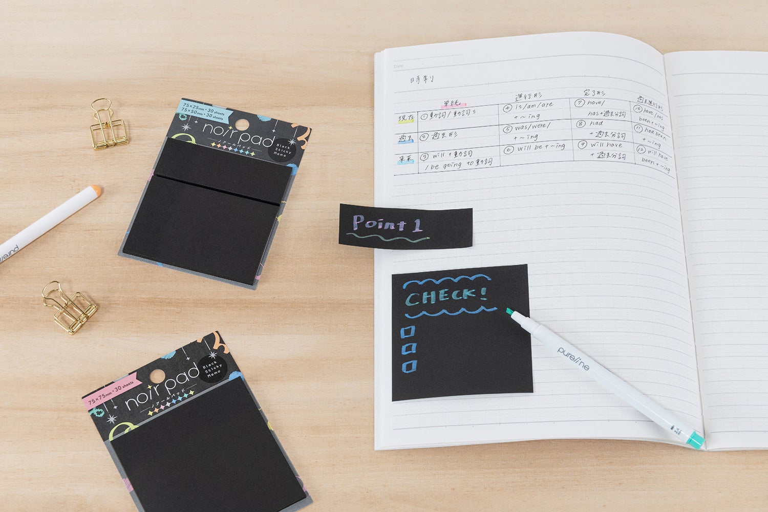 - 裏面まで黒く、ノートに貼ったときにも目立つ黒い付箋- ピュアラインとセット使いで、ノートをきれいにまとめられる