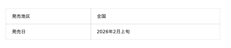 [表4: https://prtimes.jp/data/corp/98606/table/213_4_e091cf6db850e5e128741289296c5b71.jpg?v=202601270315 ]※プレス・リリースの内容は、発表当時のものです