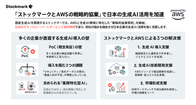 ストックマークとAWSが生成AI実装における戦略的協業契約を日本のテクノロジーパートナーとして初締結