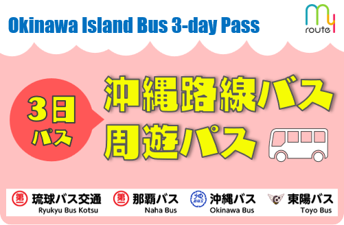 本パスは、株式会社琉球バス交通、沖縄バス株式会社、那覇バス株式会社および東陽バス株式会社が運行する沖縄本島の一般路線バスを、3日間何度でも乗り降りできる乗車券です。