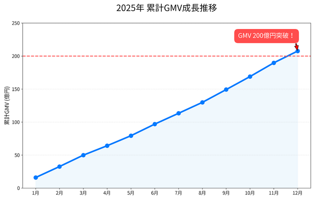 セルカのGMVは2018年にサービスをリリースしてから着実に拡大し、数億円、数十億円規模を経て、2025年の年間GMVはついに200億円を突破しました。