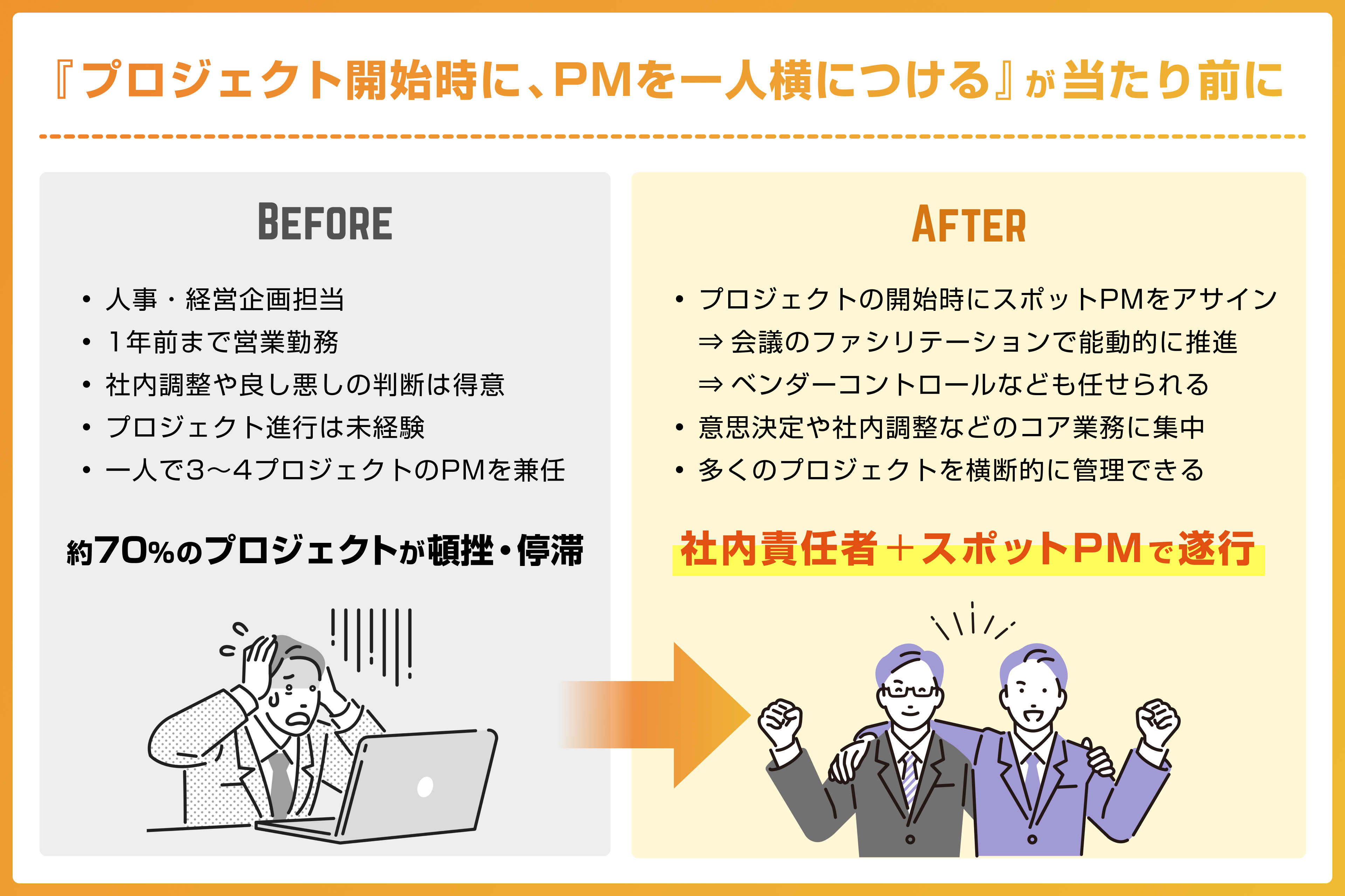 いずれも共通するのは、「専任PMを置くほどではないが、誰かが進めなければならない」という点です。