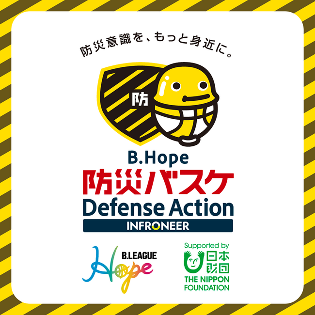 B.Hope(B.LEAGUE Hope)が展開する防災におけるオリジナルプログラムです。「防災において大事なこと」と「バスケの楽しさ」が融合したアクションを通じて、「備える人」「動ける人」「助ける人」を育てることを目的としています。