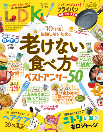 3月号は「老けない食べ活」を総力特集! 10年後の自分を見るのが怖い…。そんなあなたのために、専門家から教えてもらった「今すぐできる食生活の改善方法」を伝授します。ほかにも「ヘアケアの真実39」「ニトリグッズ辛口ジャッジ2026」など、生活が楽しくなる情報が満載です。使う人目線の検証で見つけた本当にイイもので、心地よい暮らしを実現しましょう。
