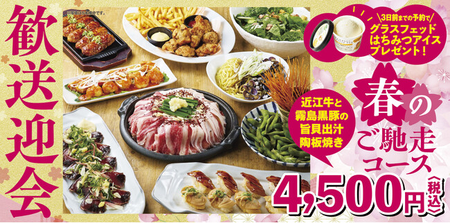 さらに特典として、3日前までに「春のご馳走コース」ご予約のお客様にはワタミファーム北海道美幌峠牧場の生乳を使ったグラスフェッドアイスをご提供。厳選黒毛和牛コース(税込5,000円)ではすき焼きのお肉が近江牛にグレードアップ!そして味の饗宴コース(税込6,000円)ではすき焼きの近江牛がなんと2倍になる特典をご提供いたします。