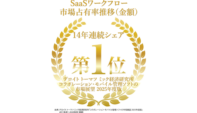 ワークフローシステムのリーディングカンパニーである株式会社エイトレッド(本社:東京都渋谷区、代表取締役社長:岡本康広 以下、エイトレッド)が開発・提供するクラウド型ワークフロー「X-point Cloud(エクスポイントクラウド)」は、デロイト トーマツ ミック経済研究所株式会社(以下、デロイト トーマツ ミック経済研究所)が調査した「コラボレーション・モバイル管理ソフトの市場展望2025年度版」において、SaaS・ASP型ワークフロー市場シェア(出荷金額)で14年連続シェアNo.1となりましたのでお知らせいたします。