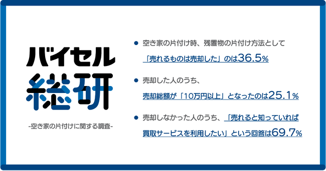 空き家の残置物片付け「売れば10万円超」が4人に1人、一方で6割超が“売却”を選択せず【バイセル総研】