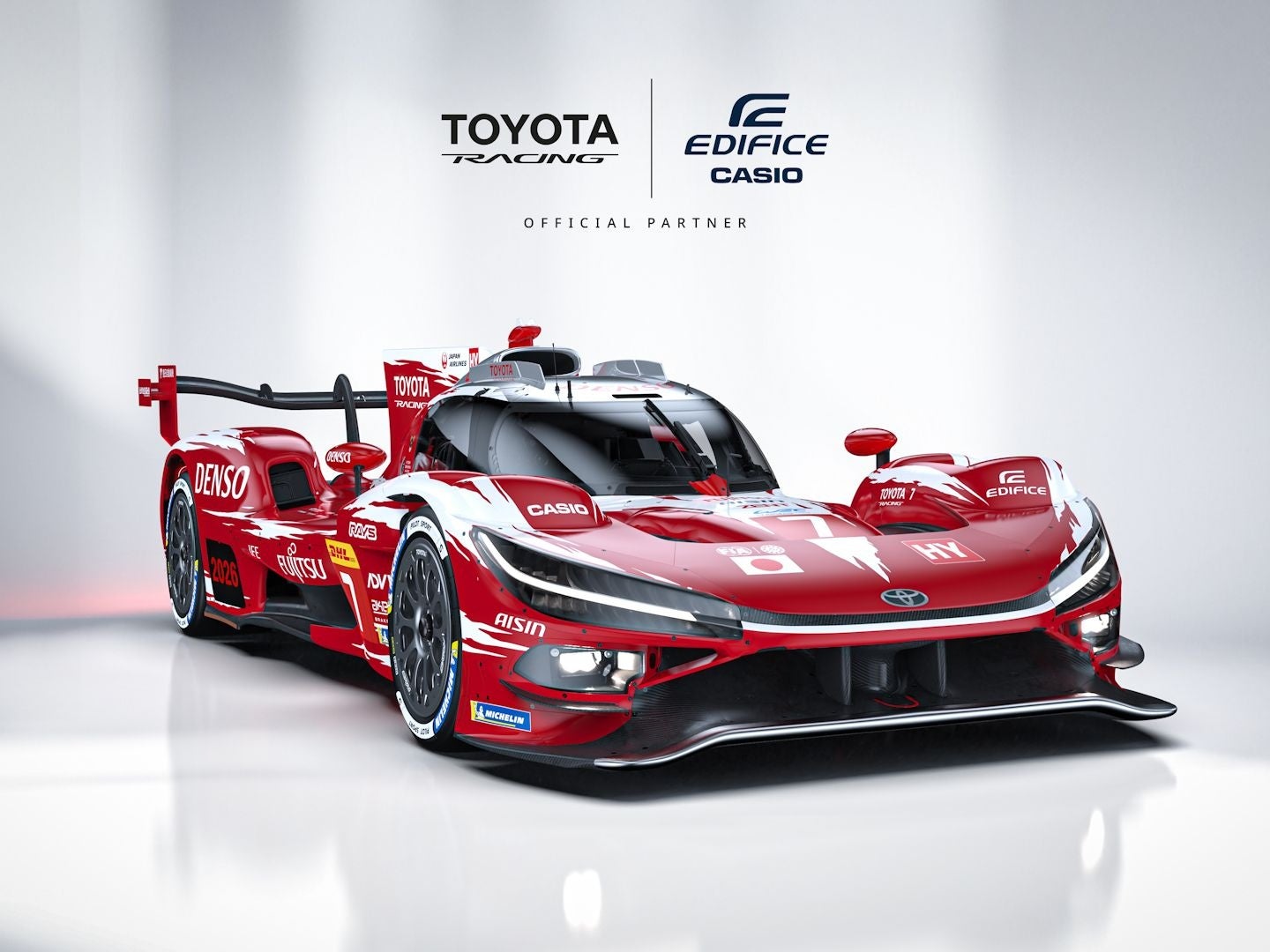 今回、「TOYOTA RACING」の車を進化させ続けるという挑戦心、世界最高峰のレースで培われた革新的な技術、そしてスピードを追求する情熱が“EDIFICE”の世界観と相通ずることから、パートナーシップ契約を締結する運びとなりました。「TOYOTA RACING」が参戦するFIA世界耐久選手権(WEC)のシーズン期間中には、“EDIFICE”がチームに提供され、マシンのヘッドライト部分には、“CASIO”と“EDIFICE”のロゴが掲出されます。今後も、当社はチームの挑戦を力強くサポートしていきます。